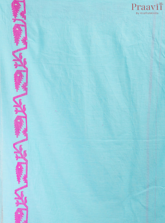 Teal Blue Glass Tissue Saree with Embroidered Borders