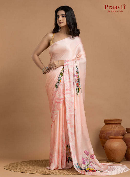 Vanilla Pink Crepe Satin Saree with Sequin Work