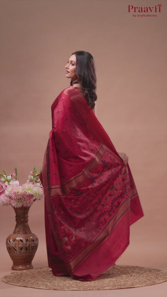 Maroon Semi Tussar Saree with Baluchari Motifs