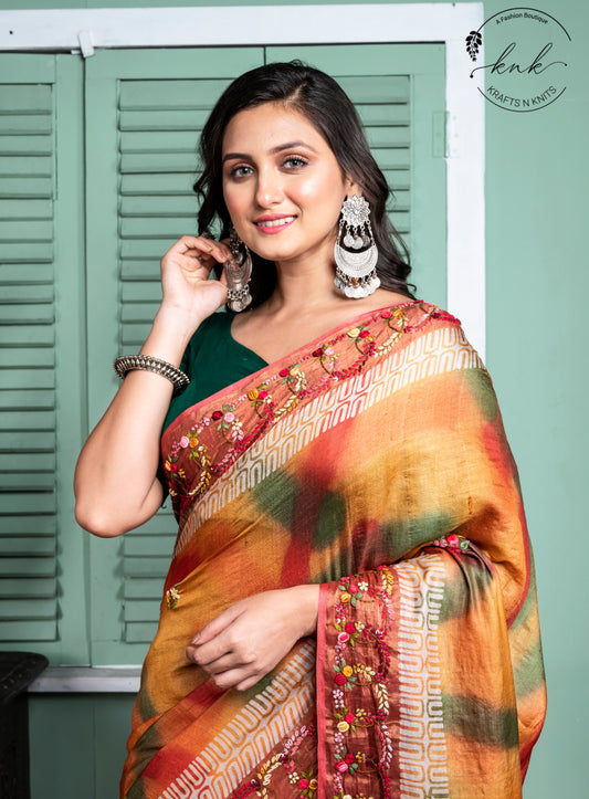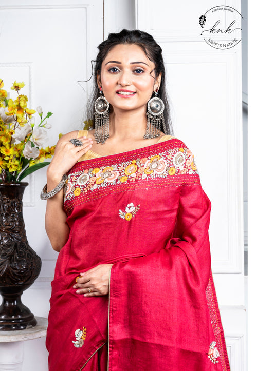 Red and Orange Khaddi saree