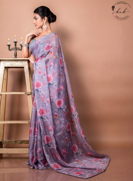 Saina Digitally Printed Organza With Handwork All Over (Saree)