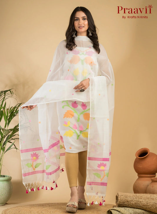 White Muslin Unstitched Jamdani Suit 2-Piece Set
