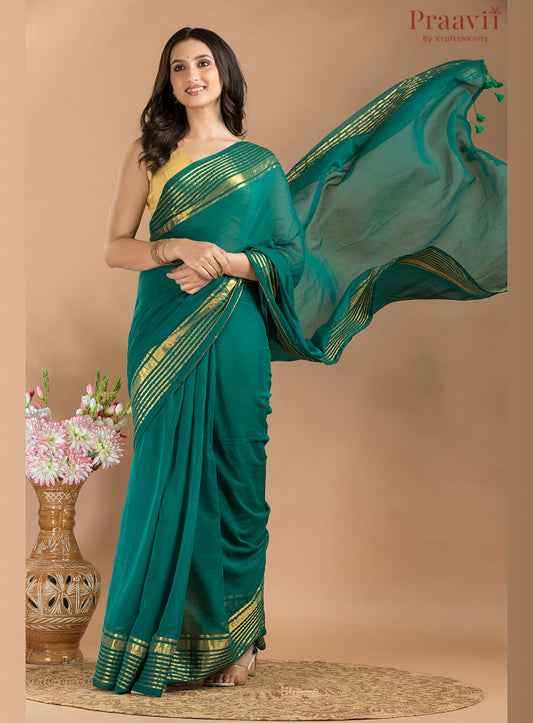 Teal Blue Glass Tissue Saree with Embroidered Borders