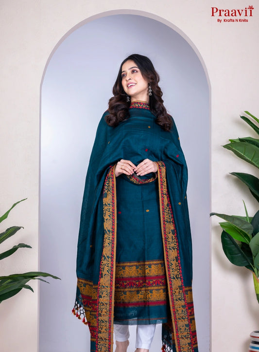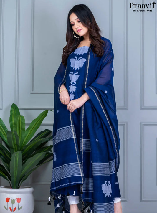 Deep Blue Cotton Jamdani Handwoven Unstitched Suit Set