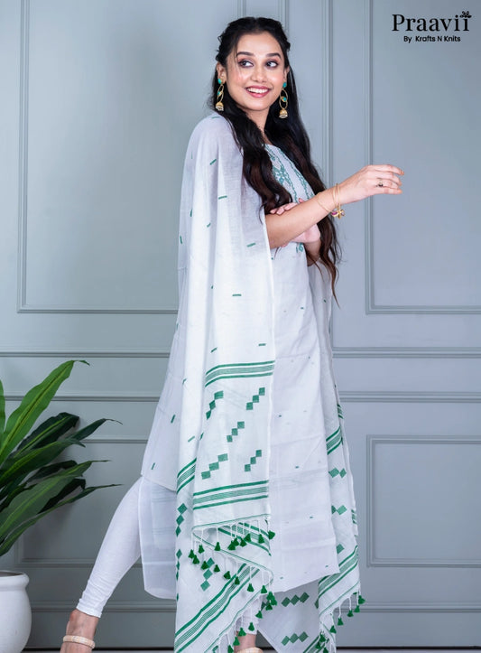Mint Green Handwoven Cotton Jamdani Unstitched Suit Set