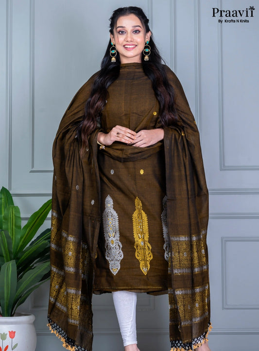 Deep Brown Jamdani Cotton Unstitched Suit Set