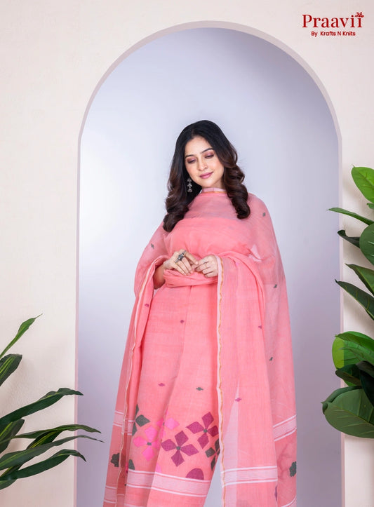 Pink Cotton Handwoven Jamdani Unstitched Suit Set