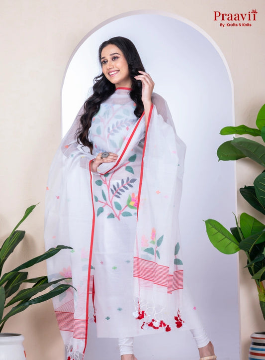 White Cotton Handwoven Jamdani Unstitched Suit Set