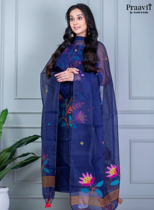 Deep Blue Cotton Jamdani Handwoven Unstitched Suit Set
