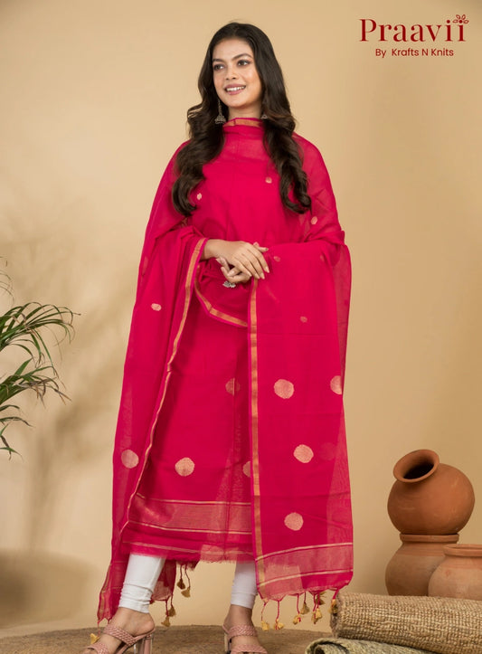 Magenta Colour Muslin Unstitched Jamdani Suit 2-Piece Set