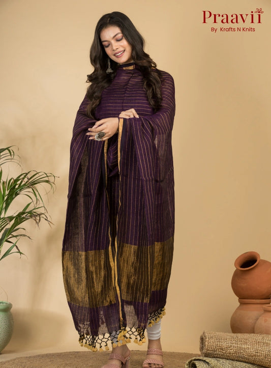Amethyst Colour Handloom Jamdani Linen 2- Piece Suit Set
