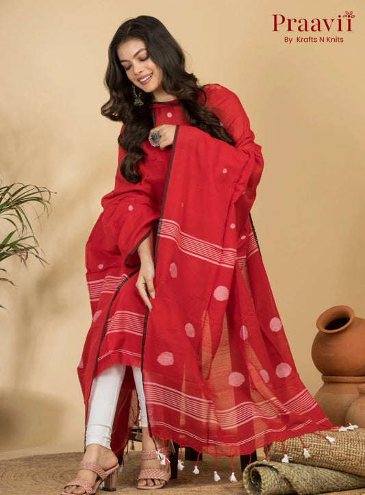 Crimson Red Pure Cotton Unstitched Jamdani 2-Piece Suit Set